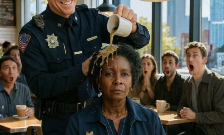 A police officer sneered as he poured hot coffee over a young Black woman’s hands, laughing as the crowd looked on. “Watch where you’re going next time,” he spat, his badge gleaming with arrogance. But just minutes later, his smirk vanished. The woman calmly wiped her hands, reached into her bag—and pulled out an ID that made every officer nearby freeze. His face drained of color as he realized who she was, and suddenly, the man who mocked her was the one begging for mercy.