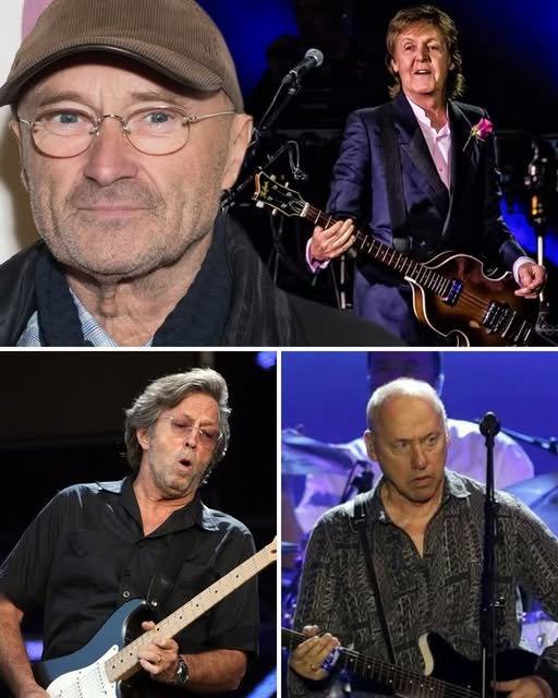 In 1997, music history was made when Paul McCartney formed a supergroup with Eric Clapton and Phil Collins, joined by Mark Knopfler and conducted by the legendary George Martin. As the first notes of Golden Slumbers filled the air, the audience fell silent, mesmerized by McCartney’s soulful voice. Clapton’s guitar wept with emotion, while Collins’ thunderous drumming added intensity, and Knopfler’s signature touch brought new depth. Under Martin’s masterful direction, the medley soared to breathtaking heights. As The End reached its climax, the crowd erupted in a standing ovation, overwhelmed by nostalgia and awe. Cheers and teary eyes filled the venue as these music legends united, transforming the Abbey Road Medley into an unforgettable, once-in-a-lifetime masterpiece.