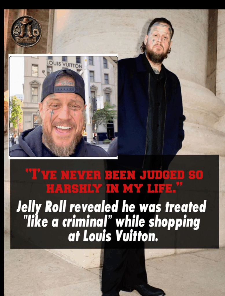 “I was so excited,” Jelly Roll said. “I’ve worked my whole life to get to a place where I could walk into a store like that. But when I did, they treated me like a criminal — like I didn’t belong there.”