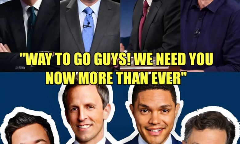 In an unprecedented act of unity, Jimmy Fallon, John Oliver, Seth Meyers, Jimmy Kimmel, and Trevor Noah appeared on stage together — unannounced — for what’s now being called “The Night Comedy Stood Still.”