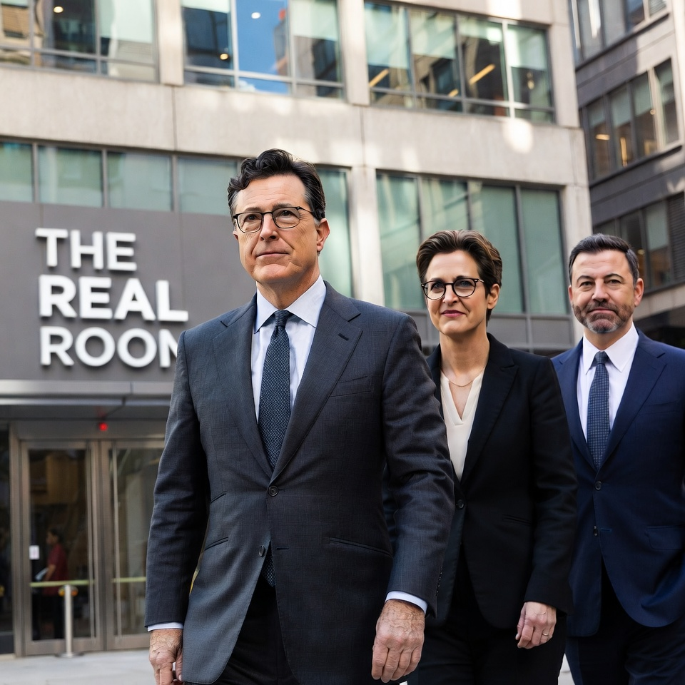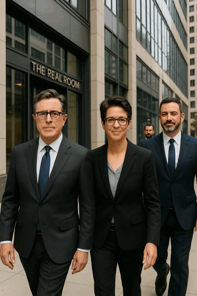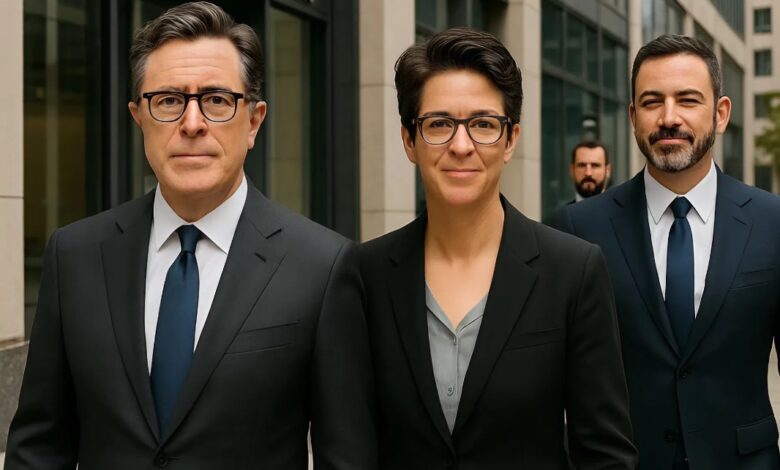 In a single night, Stephen Colbert, Rachel Maddow, and Jimmy Kimmel — three of the most powerful voices in American media — quietly stepped away from their multimillion-dollar contracts, leaving studios scrambling and fans stunned.