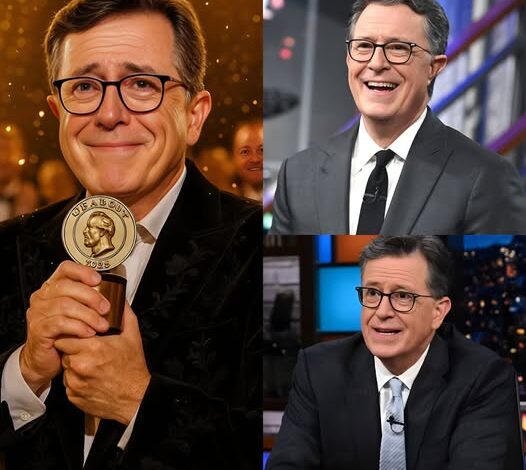 Colbert stopped mid-stage, blinking through tears that shimmered beneath the hot lights. For a moment, he didn’t move. The world didn’t move. Even the cameras seemed to pause, unwilling to break the spell.
