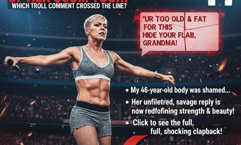 In a candid, raw revelation that has sent shockwaves across the entertainment industry and social media, P!nk has detailed the agonizing toll of internet toxicity, specifically pinpointing a single, venomous troll comment that viciously targeted her 46-year-old body. This wasn’t about her music, her performance, or her artistry. This was a personal, cruel attack designed to shame and diminish a woman who has consistently defied conventional beauty standards.