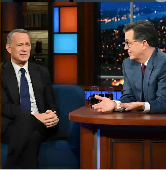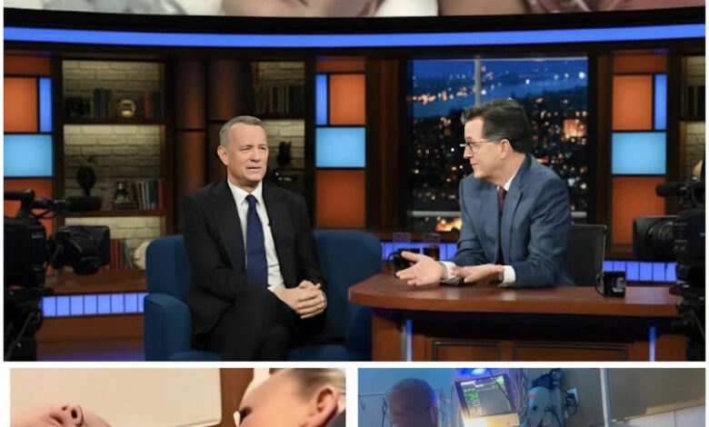 In a cold, high-tech studio illuminated by the flicker of unauthorized data streams, the atmosphere was thick with a tension that could be felt through the screen. At the center of the stage stood the icons of a dying era: Tom Hanks and Stephen Colbert. But they were not there to entertain. They stood in a stunned, haunting silence, their eyes fixed on the man who had emerged from the shadows to dismantle the world’s carefully curated reality.