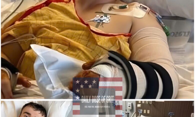 Despite the thick bandages swathing his arms—the very limbs that doctors nearly amputated—Hunter’s eyes weren’t filled with the “thousand-yard stare” of a trauma victim. They were filled with light. For 22 minutes, the ICU transformed from a place of tragedy into a playground of hope.