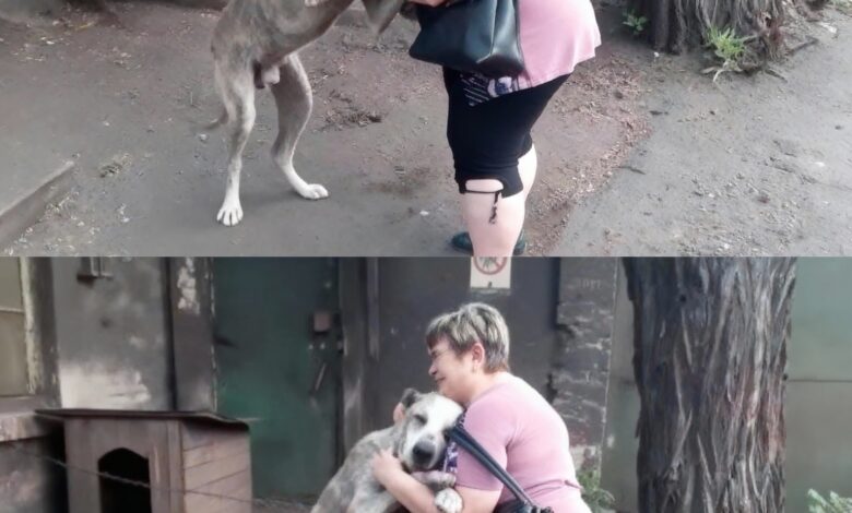 After months of pleading, Karin finally convinced the owner to surrender Katy — and the moment the heavy chain was removed, Katy did something unforgettable. He stood on his hind legs, wrapped his paws around Karin, and held her tight — as if saying “Thank you for saving my life.”