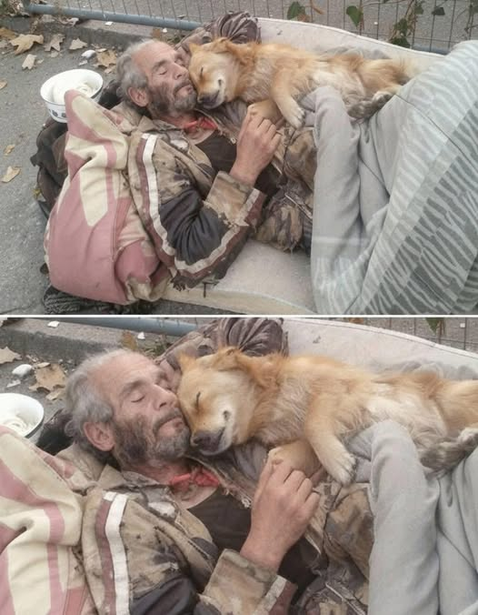 This image speaks what words cannot — a story of devotion, resilience, and a love so pure it turns even the coldest street into home.