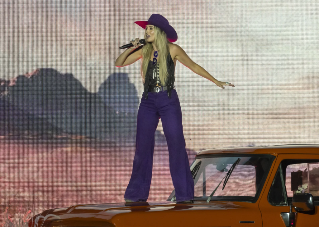 Even after the wardrobe swap, Wilson kept much of her original look intact. She paired the dark jeans with her signature purple cowboy hat — which had coordinated with her earlier purple pants — along with a black leather vest adorned with silver buttons. She accessorized with a bolo tie and wore her long blonde hair straight, maintaining the bold country aesthetic that has become central to her brand.