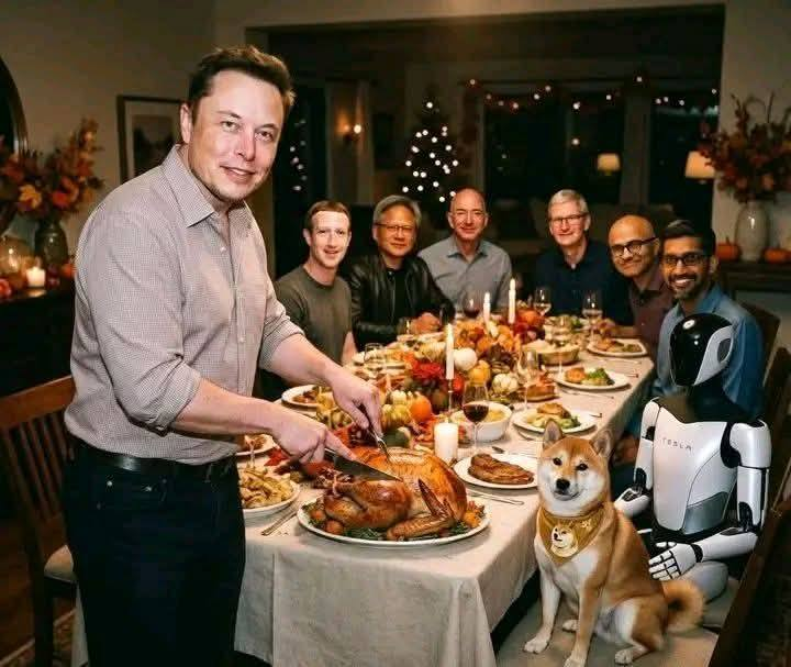 Later, Musk hosted a festive dinner with a group of longtime friends, many of whom are themselves billionaire entrepreneurs and influential figures. Yet the atmosphere was far from corporate. The evening was filled with conversation, laughter, and togetherness rather than business talk, with even Musk’s dog and a humanoid robot adding a uniquely “Musk-style” touch to the holiday table.