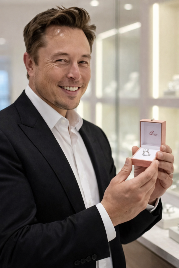 Elon Musk has once again captured public attention — this time not for rockets or technology, but for a moment that appears far more personal. Recent images showing the billionaire looking unusually cheerful while purchasing a gift alongside a diamond ring have quickly ignited speculation online. The identity of the woman believed to be receiving the ring has not been revealed, adding an extra layer of intrigue.