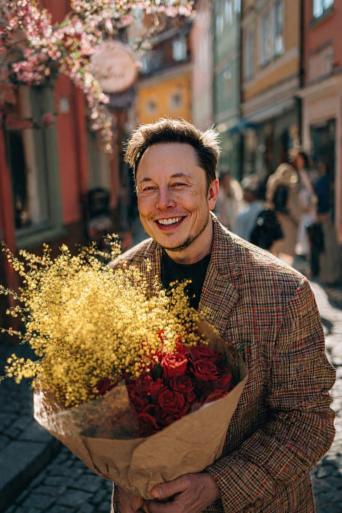 Elon Musk has never needed grand announcements to capture attention. This time, it was a quiet image that set social media racing: the billionaire entrepreneur, dressed in a youthful, relaxed style, holding a bouquet of flowers — reportedly for a girlfriend whose face remains deliberately hidden.