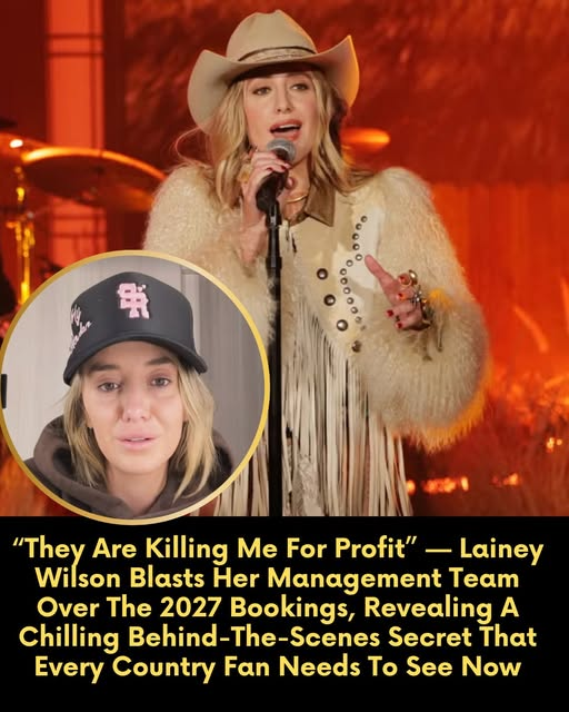 Lainey Wilson is currently the brightest star in the Nashville sky. With a CMA Entertainer of the Year trophy on her shelf and a string of number-one hits, she has become the face of modern country music. But as 2026 kicks off, the “bell-bottom country” queen has pulled back the curtain on a devastating reality. Behind the sold-out arenas and the signature flair lies a woman who claims she is being pushed to the brink of collapse by the very people supposed to protect her.
