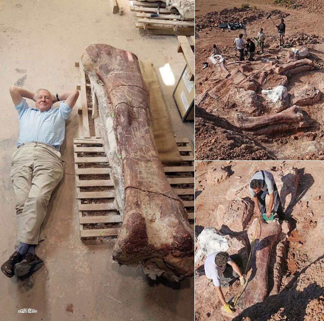 At the center of this extraordinary find lies a single bone — a 2.4-meter-long femur, so large that it dwarfs the researchers who first uncovered it. Discovered in Argentina’s Neuquén Province, the fossil stands as a silent monument to an age when giants roamed freely across a primeval Earth.