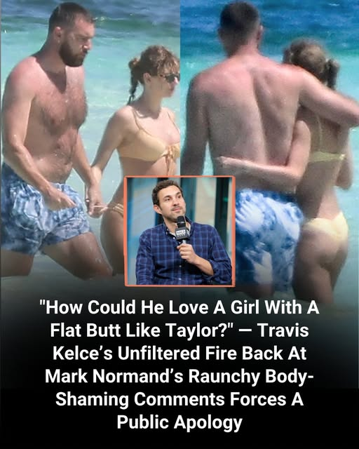 The drama ignited when Normand, during a late-night set, made a “Savage” jab at Taylor, mockingly asking, “How could a guy like Travis love a girl with a flat butt like Taylor?” The comment, meant to be a joke, instantly went viral for all the wrong reasons. But the real “Heart-pounding” moment came when Travis Kelce fired back with an unfiltered intensity that has left the comedy world in total shock and forced Normand into a humiliating public apology.
