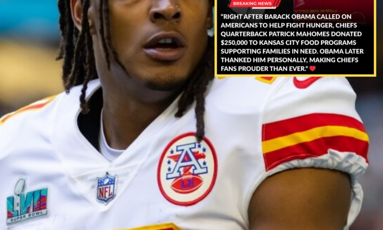 qq BREAKING UPDATE: Following Barack Obama’s call to take action against hunger, Chiefs superstar Patrick Mahomes responded not with words, but with impact — donating $250,000 to support multiple food-assistance programs across Kansas City. The move is being praised as another example of Mahomes’ leadership extending far beyond football. Isiah Pacheco has since reacted to the gesture, and what he said is prompting fans to see Mahomes’ influence in an entirely new light…