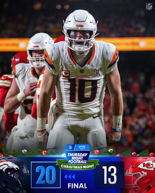 The final whistle echoed through Arrowhead Stadium on Christmas night, and for the Kansas City Chiefs, it sounded louder than any holiday cheer. The Denver Broncos had walked into one of the NFL’s most intimidating environments and left with a statement road win, closing the night with a result that sent shockwaves through Chiefs Kingdom and shifted the emotional temperature of the AFC race.