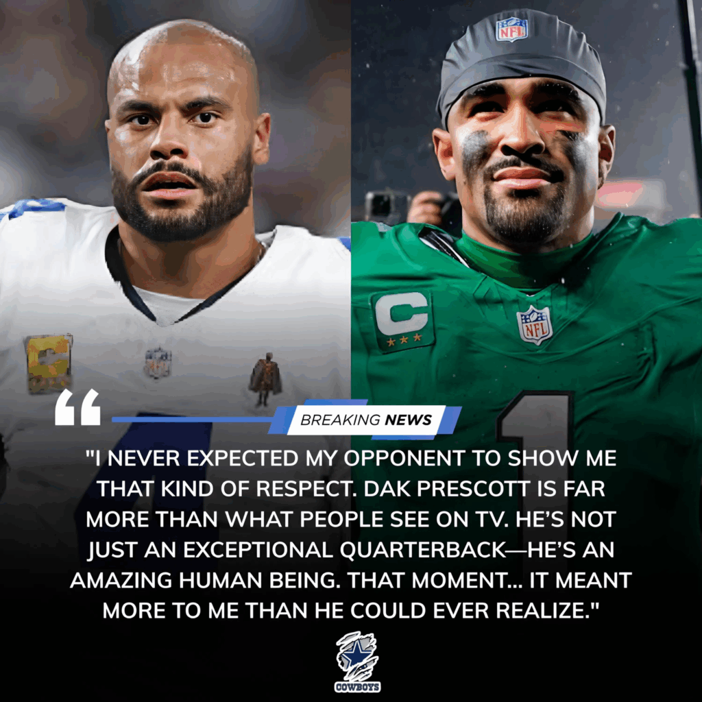 As the Cowboys erupted in celebration after the nail-biting win, quarterback Dak Prescott quietly stepped away from the cheering teammates, cameras, and flashing lights. He walked across the field toward a solitary figure on the opposing sideline: Eagles quarterback Jalen Hurts, who had just endured a heart-wrenching loss after a game full of ups and downs.