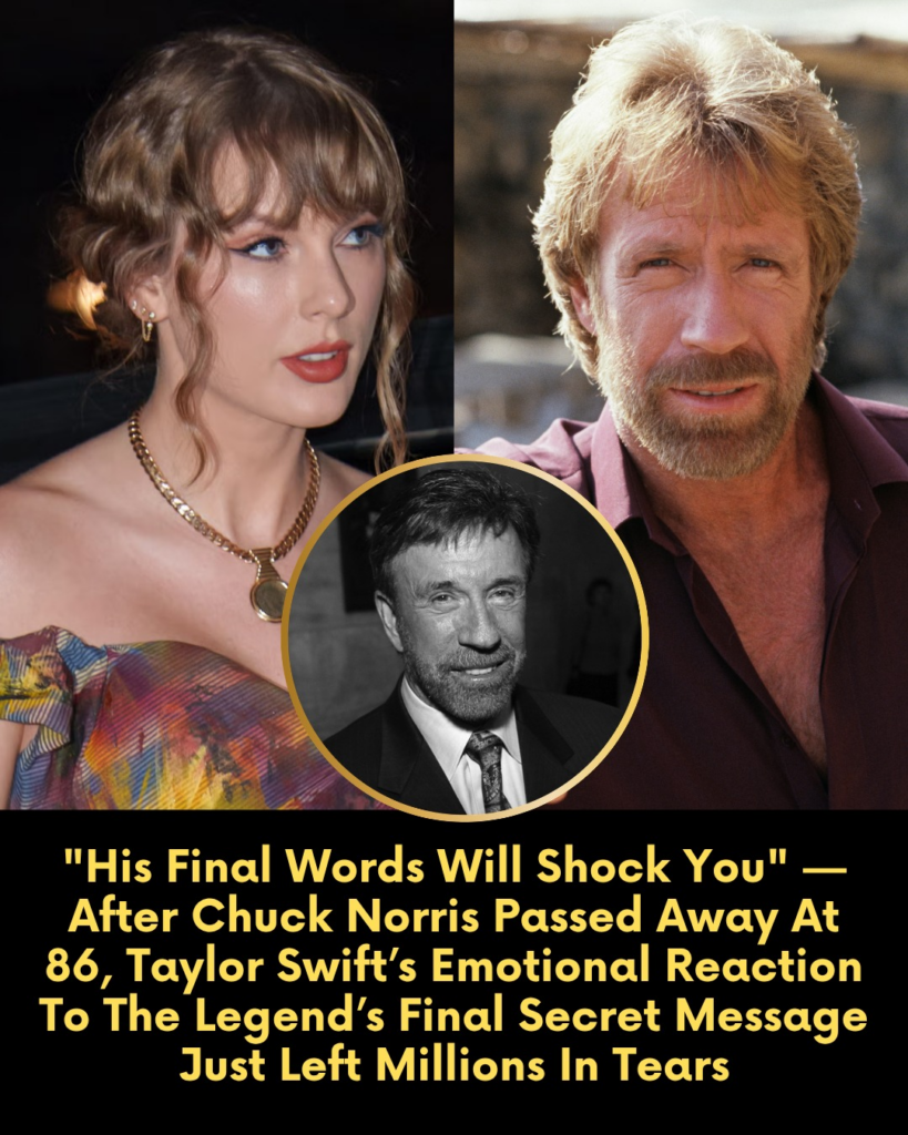 Taylor Swift, a voice often associated with a new era of global influence and progressive change, took to her platform not just to offer condolences, but to share a shocking discovery. It was a secret message from the late Chuck Norris, a final piece of wisdom intended for the “voices that lead the future.” The revelation has since triggered a massive wave of emotion, leaving millions questioning the true legacy of the “Walker, Texas Ranger” star.