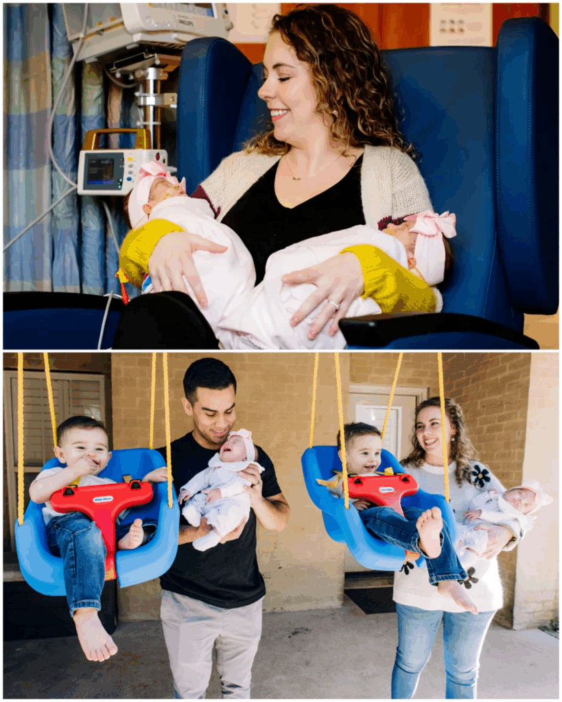 Today, Lynlee and Lydia are 3 months old, and Luka and Levi are 17 months. The four siblings share an unbreakable bond — and an oversized four-seat stroller that always turns heads.