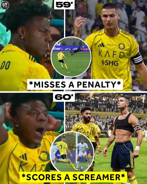 Just missed a penalty, making millions of fans hold their heads in regret… less than 60 seconds later, CR7 turned around and fired an unbelievable long-range shot, shaking the opponent’s goal! 💥⚽🤯