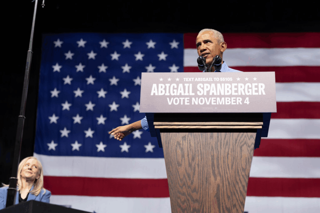 “The government is shut down and the Republicans who currently are in charge of Congress, they’re not even pretending to solve the problem,” Obama said at a rally for Abigail Spanberger, the Democratic gubernatorial candidate in Virginia.
