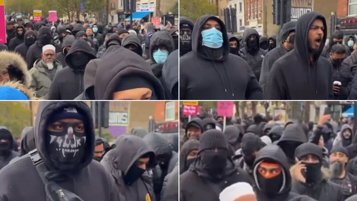 PICTURED: Columns of masked Muslim men chant ‘Allahu Akbar’ in London|