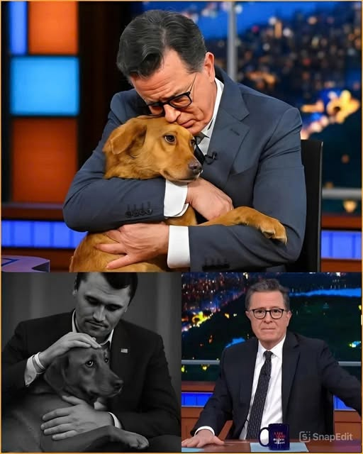 For a long moment, no one in the room moved. The cameras rolled quietly as Colbert stroked the dog’s head, whispering, “You’re home now, buddy.”