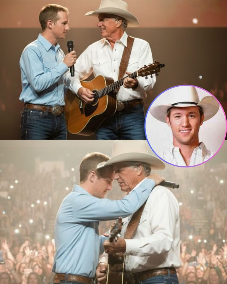 The crowd hushed. Then, from the wings, Bubba Strait — George’s son and frequent songwriting partner — stepped into the spotlight, a guitar slung over his shoulder. The audience gasped, and then the arena erupted in applause. Father and son embraced, both visibly emotional, before the first gentle notes of a song no one had ever heard began to play.