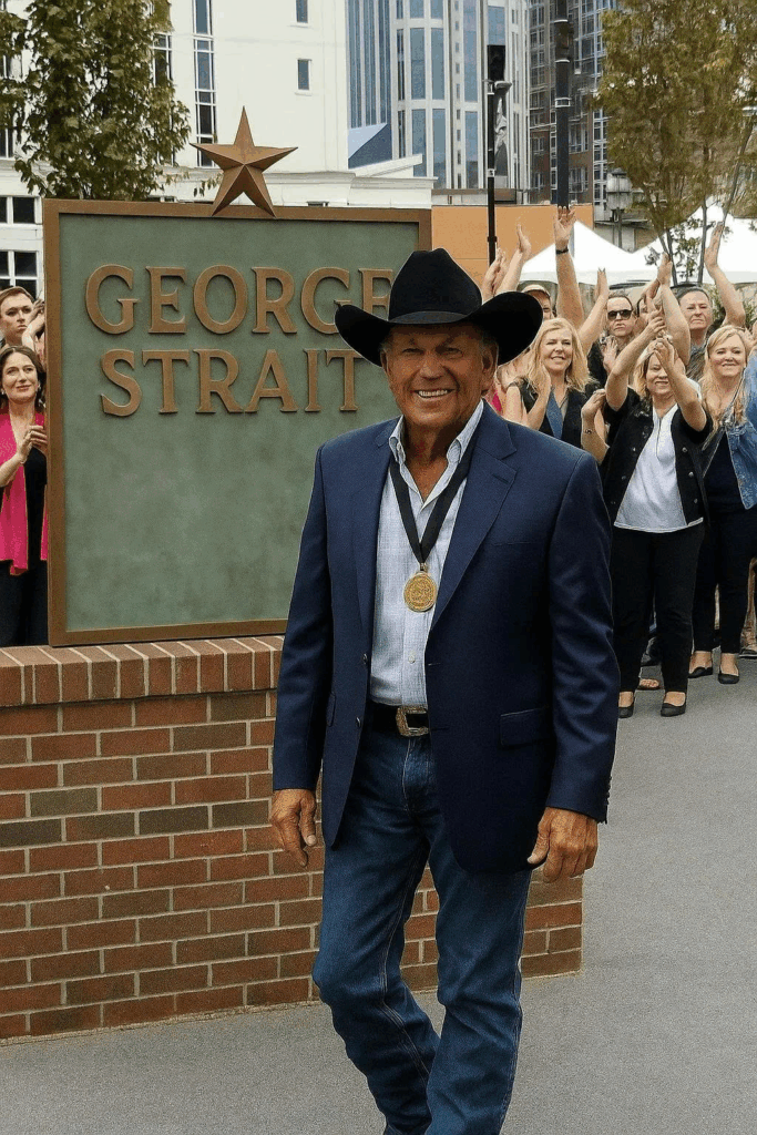 With his signature black Resistol cowboy hat, Wranglers pressed sharp enough to cut glass, and that calm, unassuming smile that has broken millions of hearts since 1981, George Strait walked up to the site as hundreds of fans erupted in a cheer that could have rivaled a stadium roar.