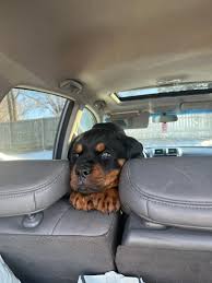 At just eight weeks old, the little Rottweiler puppy sat quietly in the backseat, his oversized paws tucked beneath him and his dark, gentle eyes scanning a world he didn’t yet understand. Every bump in the road made his floppy ears bounce, and every passing tree outside the window reflected a future he couldn’t quite imagine.