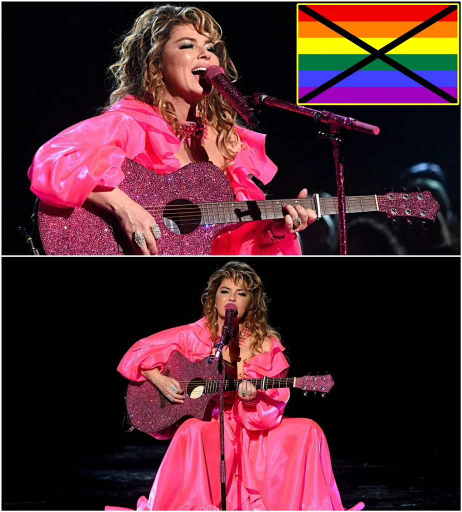 Last night in Nashville, under the glow of stage lights and the roar of an expectant crowd, country music icon Shania Twain made a move no one saw coming. In the minutes before a prime-time performance that had been hyped for weeks, she was asked to wear a rainbow-themed patch — a symbol of solidarity with the LGBTQ community. Instead of complying, she refused. In a dramatic and deeply personal moment, she delivered an impassioned statement condemning what she called the “woke agenda” — declaring that she would never bow to cultural pressure. The fallout was immediate, intense, and polarizing.