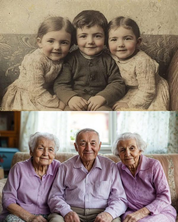 And then, a century passed. Time left its mark on their hair, on their skin, on their slow steps. But miraculously, their hearts still beat together. Three hearts at the age of 100, still in harmony, still breathing together, still vibrating with each beat of life like the first day. They became living proof of what words cannot express: brotherhood, harmony, and the miracle of family love that never fades.