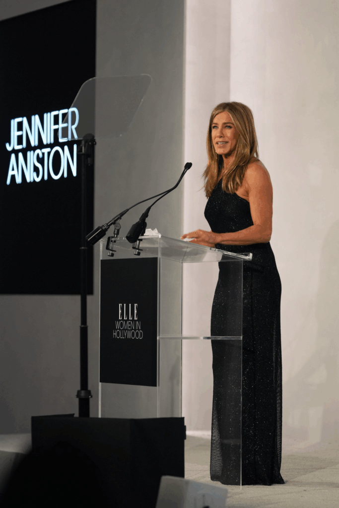On a night of dazzling lights, where applause mingled with the sound of camera flashes, Jennifer Aniston stepped onto the stage of ELLE Women in Hollywood 2025 with a calm beauty but her eyes held something deeper. The entire audience was used to a strong Jennifer – a symbol of pride, sophistication and indomitability. But that night, they witnessed something rare: Jennifer Aniston burst into tears.