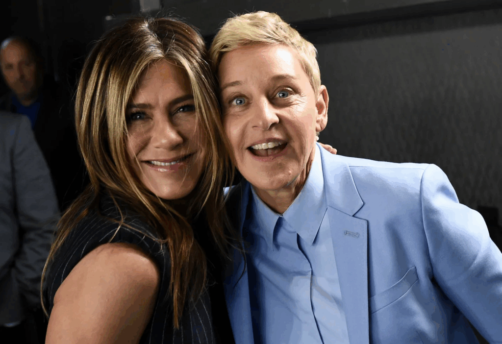 When Ellen approached Jennifer with a mysterious smile, no one in the audience dared to believe their eyes. That moment was not just an intimate gesture but also contained many profound meanings, making everyone unable to take their eyes off. Jennifer Aniston, who is always known for her calm and polite demeanor, had an extremely surprising and genuine reaction. She did not avoid or refuse, but on the contrary, her eyes flashed with an indescribable source of emotion, making the whole audience hold their breath.