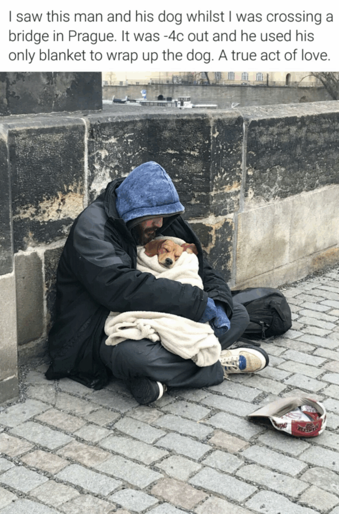**“THE HOMELESS MAN WHO ROCKS HIS DOG TO SLEEP” 🐾💔