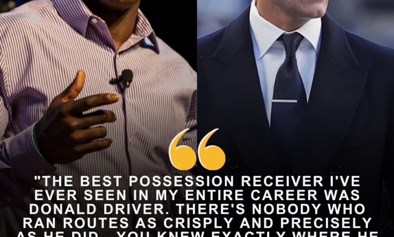 “The best possession receiver I’ve ever seen in my entire career was Donald Driver,” Brady said on air. “There’s nobody who ran routes as crisply and precisely as he did — you knew exactly where he was going to be, every time, in every moment. He was absolutely a magician when it came to being reliable and getting the tough catches.”