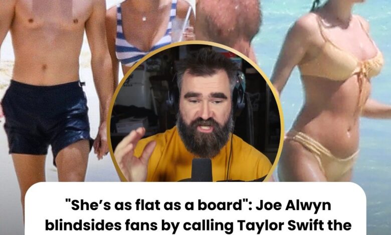 The internet ignited in a firestorm of controversy this morning after shocking comments surfaced, allegedly from Taylor Swift’s former partner of six years, Joe Alwyn. In a move that has left the “Swiftie” fandom in absolute disbelief, Alwyn reportedly targeted Taylor’s appearance, using the derogatory phrase “flat as a board” to describe the global superstar. However, the true story isn’t just about the insult—it’s about the legendary defense led by none other than Jason Kelce.