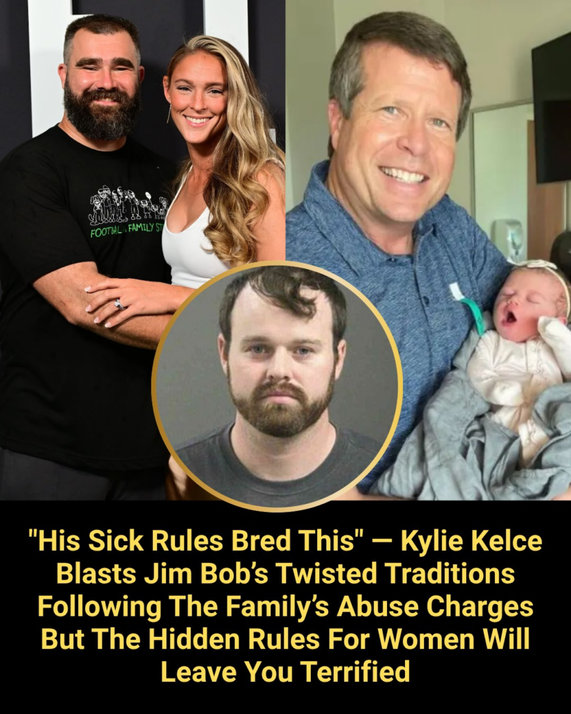 The facade of the “wholesome” Duggar family has not just cracked; it has completely shattered. In March 2026, the news of Joseph Duggar’s arrest in Florida on life-felony child molestation charges, followed by his wife Kendra’s arrest for child imprisonment in Arkansas, sent a shockwave through the nation. While the headlines focus on the individuals in handcuffs, a powerful voice from the outside has stepped in to point toward the true source of the rot. Kylie Kelce, a woman known for her uncompromising stance on family integrity and child safety, has publicly declared that Jim Bob Duggar’s “sick rules” are the true breeding ground for this tragedy.