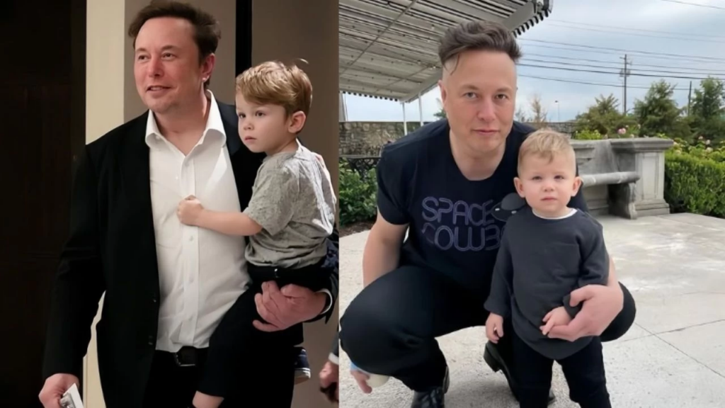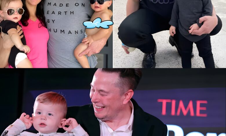 Elon Musk and Shivon Zilis with their twins Strider and Azure ; Elon Musk with son X.Credit : Shivon Zilis/ X ; Elon Musk/ X
