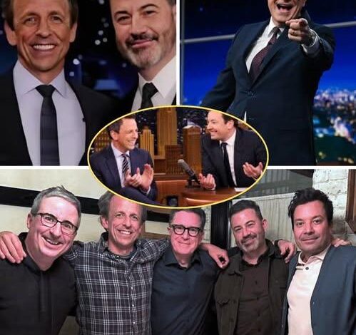 Jimmy Fallon crossed the street. He stepped off his own studio lot, possibly leaving behind his monologue teleprompter and corporate safe harbor, and showed up where it mattered. Jimmy Kimmel — rumored to be on a vacation break — broke his silence, abandoning golf clubs for pointed commentary. Seth Meyers quietly began preparing monologues sharper than usual, ready to use his comedic lash. John Oliver, often the distant anchor of British-accented wryness, refused a detached quip: “This is a loss for everyone,” he said unequivocally.