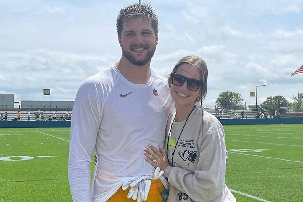 After the severe injury that forced Tucker Kraft to undergo surgery and miss the rest of the season, the haunting image of him lying motionless on the stretcher, surrounded by teammates, still lingers in fans’ minds. But what makes this story truly moving is his wife – Baylee Kraft.