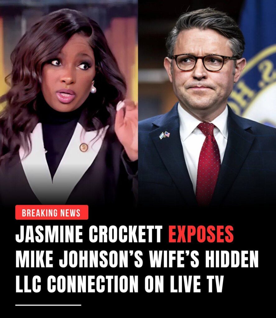 ss “Shocking Revelation Live: Jasmine Crockett Unmasks Mike Johnson’s Wife’s Secret LLC, Forcing Him to Storm Out of Hearing — Capitol Left Stunned”!