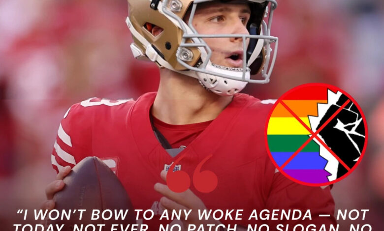 The San Francisco 49ers were preparing for what was supposed to be just another prime-time showcase under the bright lights of the NFL stage. Yet what quarterback Brock Purdy did hours before kickoff sent shockwaves far beyond the scoreboard. While teammates and opponents alike fastened rainbow-themed captain’s patches to their jerseys—a league initiative designed to show solidarity with LGBTQ fans and athletes—Purdy stunned the football world by bluntly refusing. With cameras rolling and microphones pointed in his direction, the 24-year-old quarterback delivered a statement that immediately divided locker rooms, fan bases, and an entire nation already on edge in an era of culture wars.