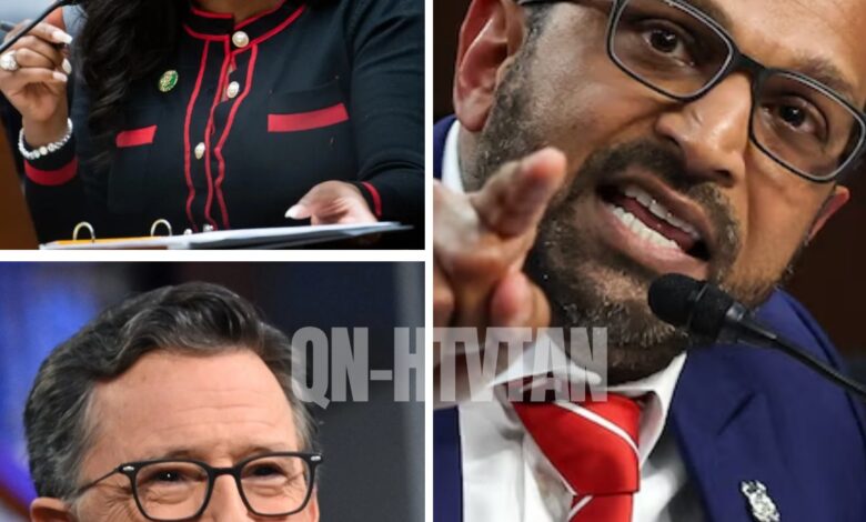 “She whispered, ‘Play it now… let them hear what you hid.’” – STUDIO ERUPTS as Jasmine Crockett drops a SECRET TAPE live on air after Kash Patel brands her “UNFIT” – triggering a stunning alliance with Stephen Colbert that could SHAKE late-night television to its core.