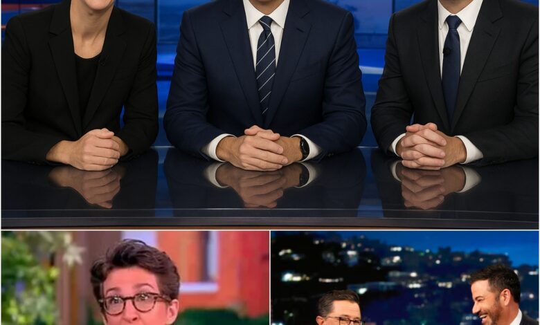 For decades, American audiences have trusted familiar faces to guide them through the nightly noise of politics, culture, and controversy. Rachel Maddow, Stephen Colbert, and Jimmy Kimmel each carved out their place in this ecosystem: Maddow as MSNBC’s intellectual anchor, Colbert as the satirist-turned-king of late-night, and Kimmel as the mainstream jester willing to spar with anyone. Together, they commanded millions of viewers and held enormous influence across the media landscape.