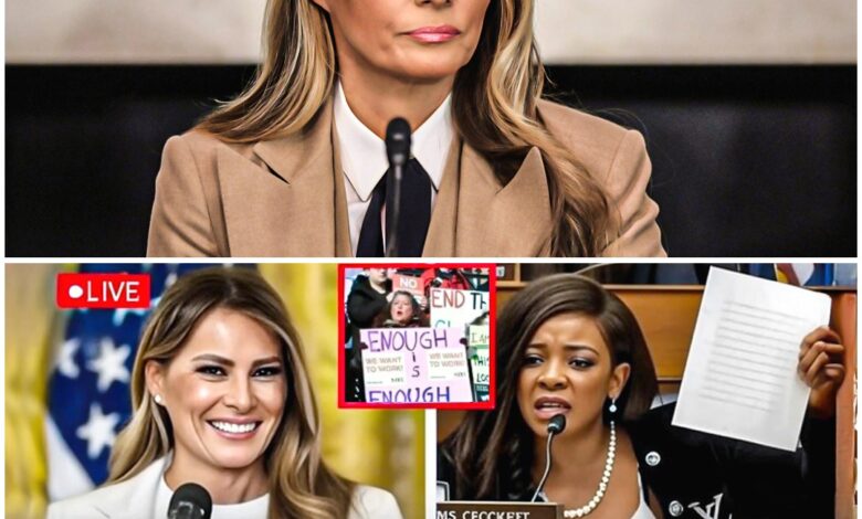 As the back-and-forth escalated, viewers watched the drama unfold through a split-screen that practically vibrated with tension. Melania’s calm, controlled glare. Crockett’s fiery, electrified rebuttal. News tickers flashing in red. Social media comments scrolling so fast the networks could barely keep up.