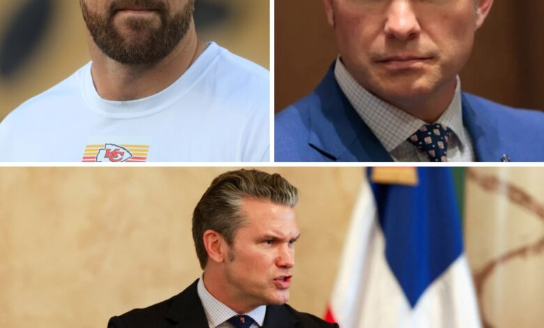 The tension began when Pete Hegseth, who had been smiling through the pre-show chatter, suddenly shifted his tone the moment the cameras went live. It wasn’t subtle. It wasn’t accidental. It was a pivot so sharp it felt like watching a car drift across a highway with no warning. In the middle of what was supposed to be a harmless question about Kelce’s off-season youth programs, Hegseth leaned back, crossed his arms, and delivered a line that detonated instantly across social media.