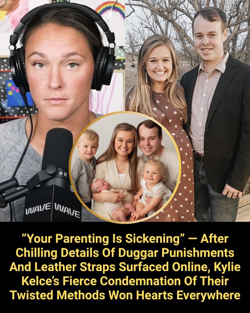 The world of reality television was once captivated by the seemingly perfect, faith-based image of the Duggar family. But today, that facade has not just cracked—it has shattered into a million pieces. Following the legal troubles of Joseph Duggar, a new wave of horrifying allegations has surfaced, involving “discipline” methods that involve leather straps and psychological punishments. As these chilling details leaked from the Tontitown investigation, one voice rose above the noise to speak for every terrified parent in America: Kylie Kelce.