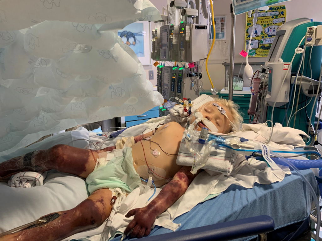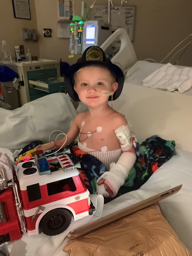 Survival, however, was only the beginning. In the months that followed, Beauden underwent an extraordinary medical journey that included 18 surgeries. Each procedure was another step toward recovery, but also another test of endurance. Hospital rooms became a second home, and recovery schedules replaced the routines of kindergarten and playtime. Pain, frustration, and exhaustion were constant companions.