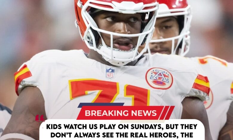 So when a reporter asked how it felt to be considered an “NFL role model,” Simmons didn’t talk about fame, highlight-reel blocks, or the responsibility of protecting Mahomes’ blind side. He paused, took a soft breath, and answered with a humility rare for a 23-year-old: